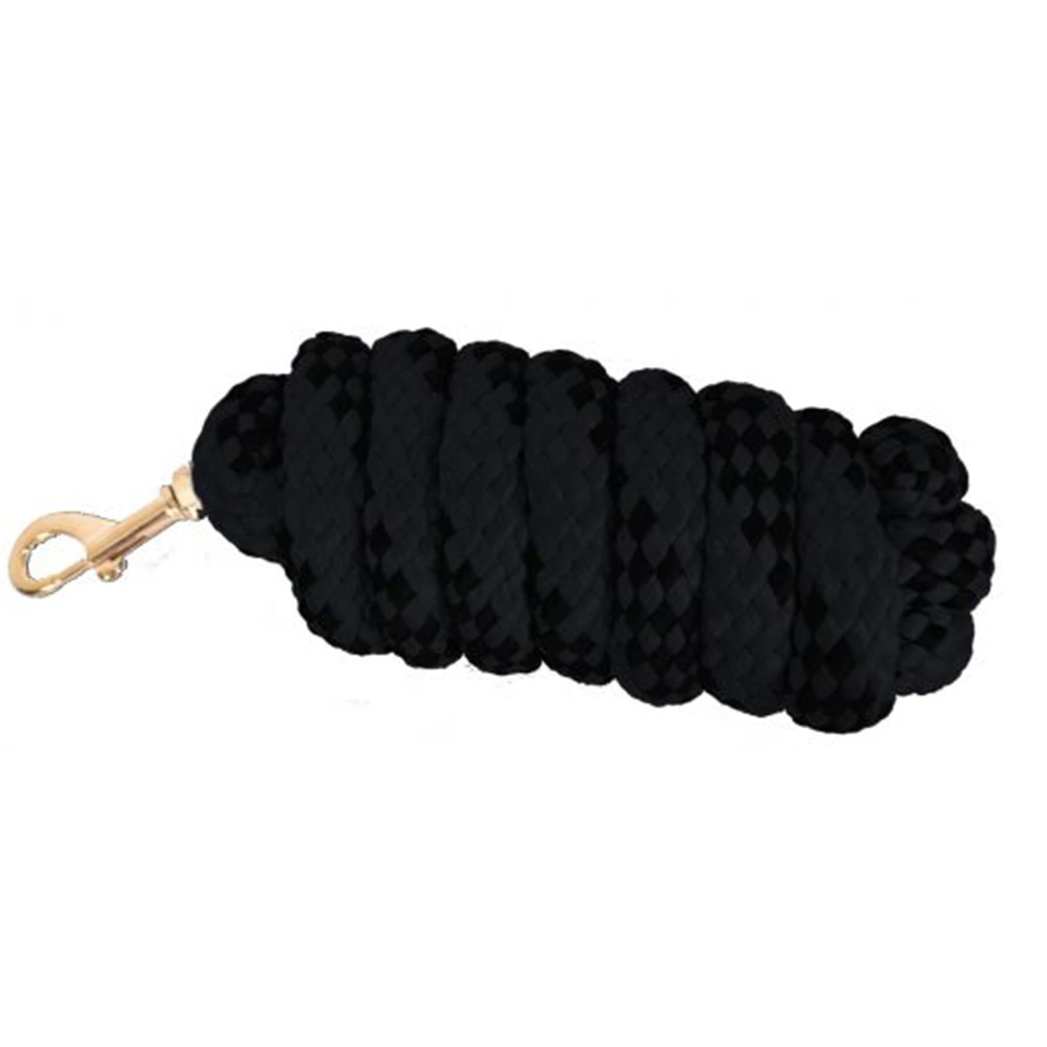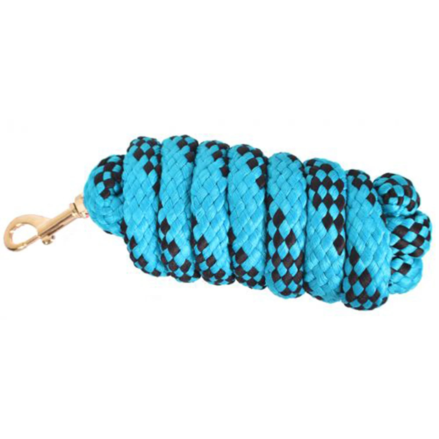 These lead ropes come in a variety of colors with a black checker pattern.   Lead is equipped with brass snap and measures 10′ long.