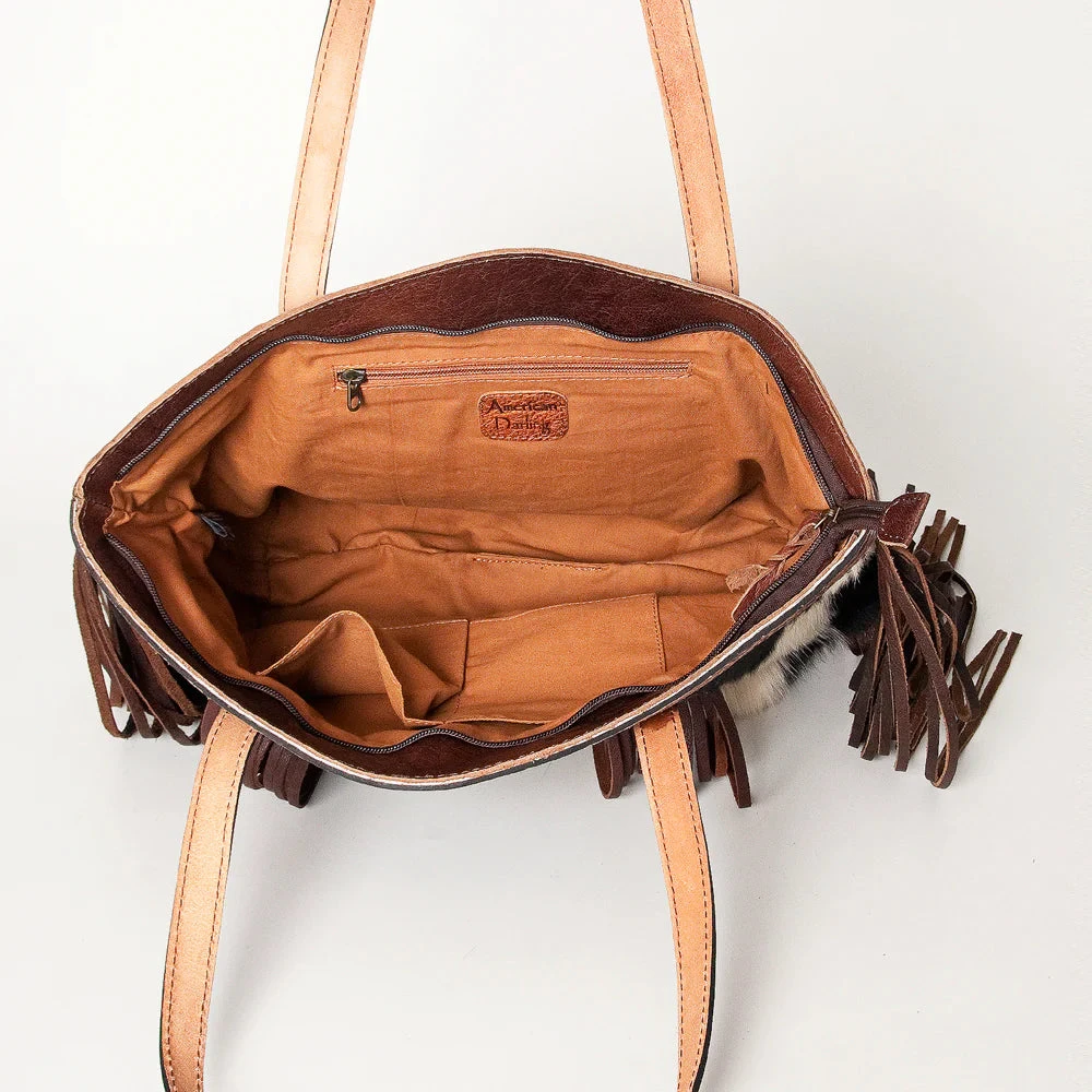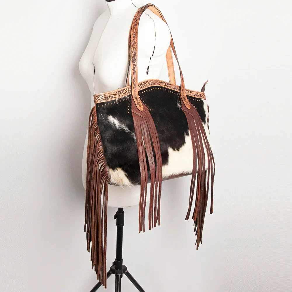 Check out this beautiful Cowhide and tooled leather bag with lots of fringe!! Carry on your shoulder or grab it by the handles. Check out the double vertical zipper concealed carry zipper/pouch to keep your gun safe!