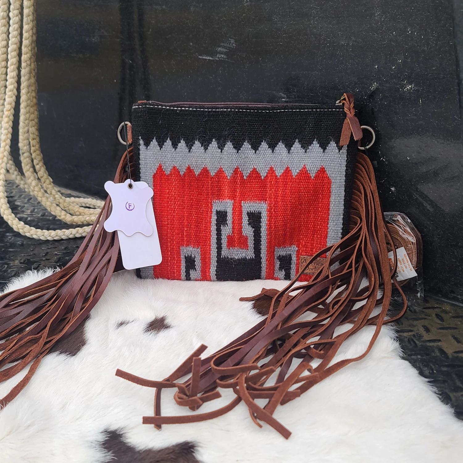 We just love the colors in this blanket crossbody by American Darling. The red just stands out against the grey & Black.Â