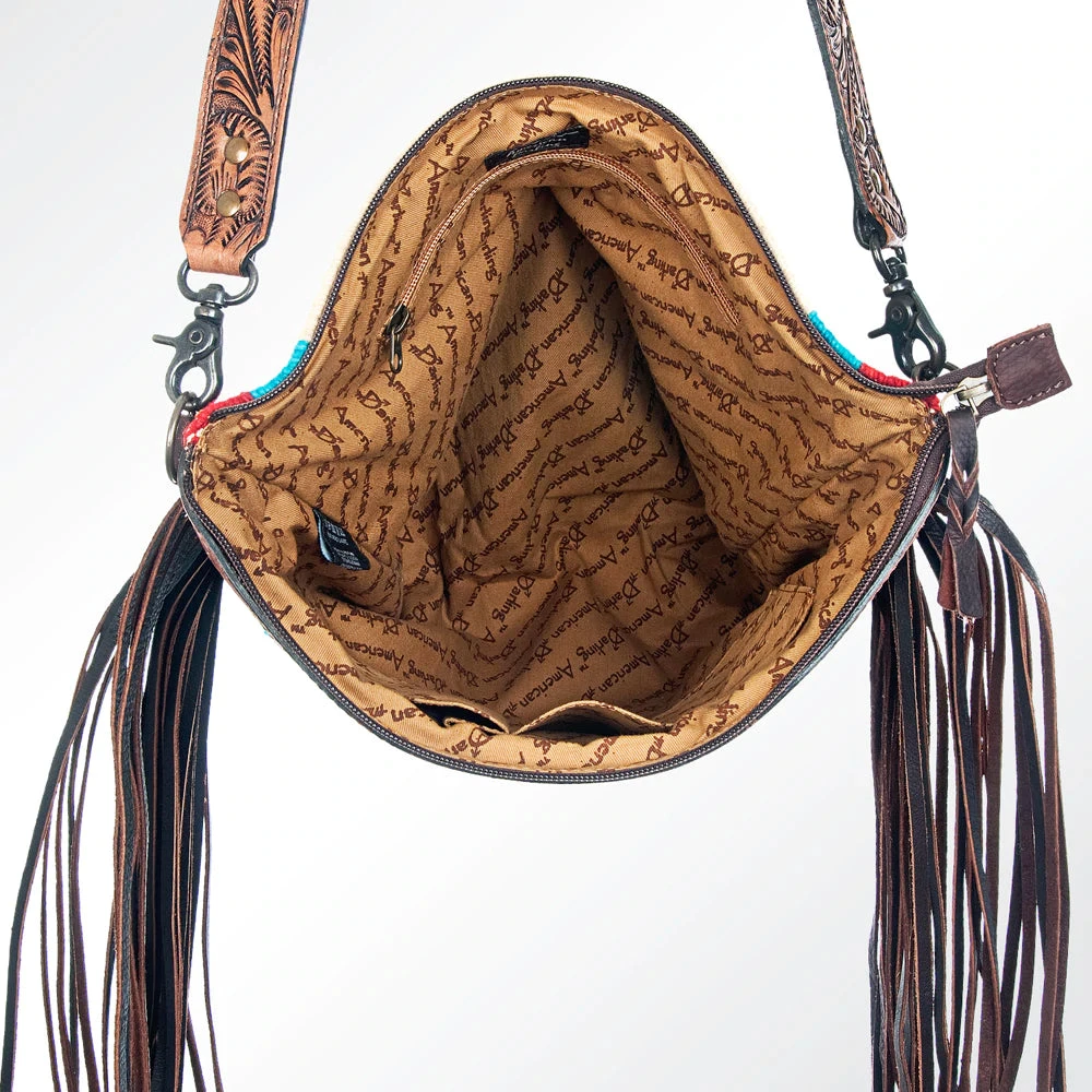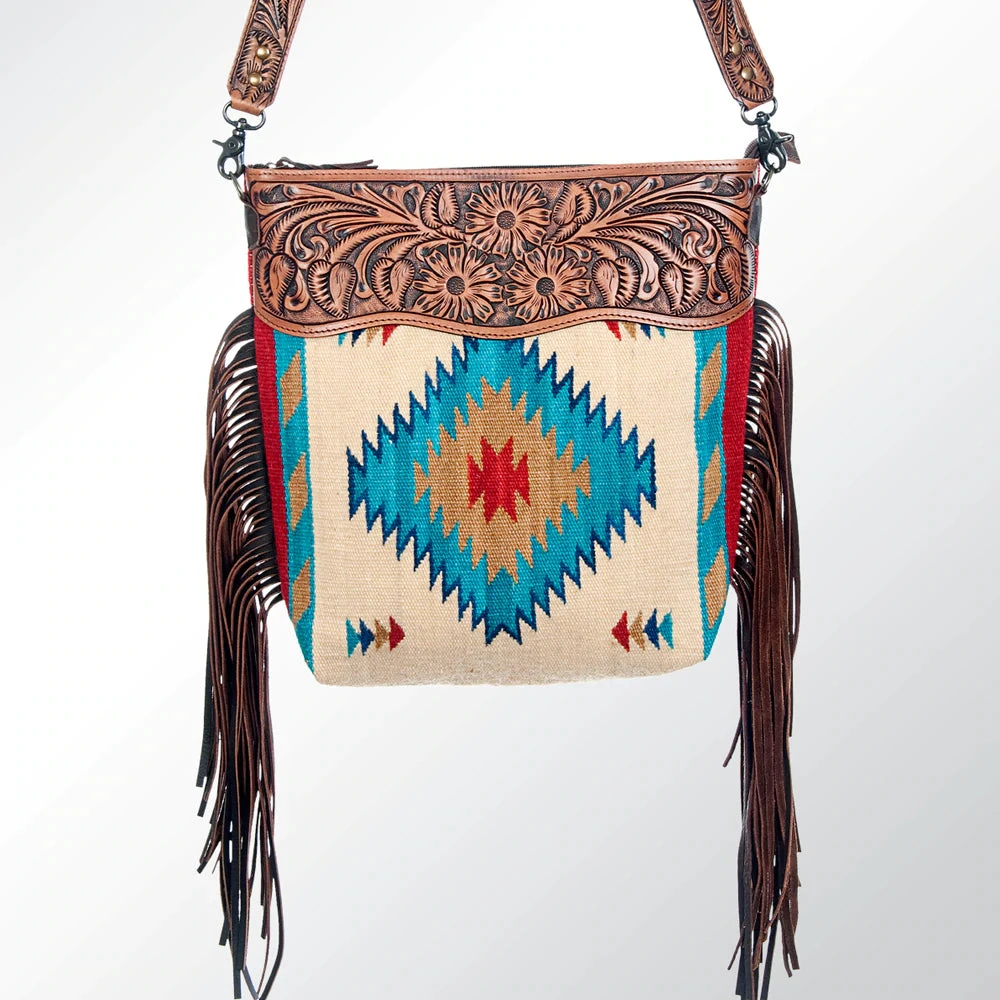 This is a great crossbody sure to add style to any outfit you pair it with. The colors on this bag stand out and that tooled leather and fringe add so much.Â