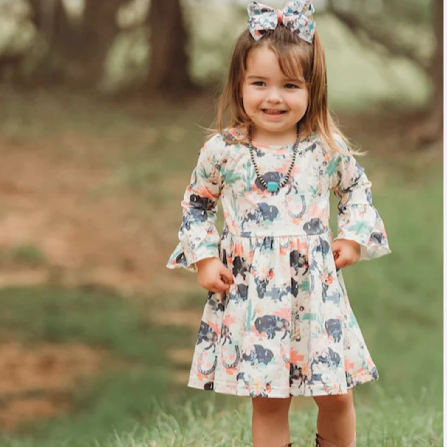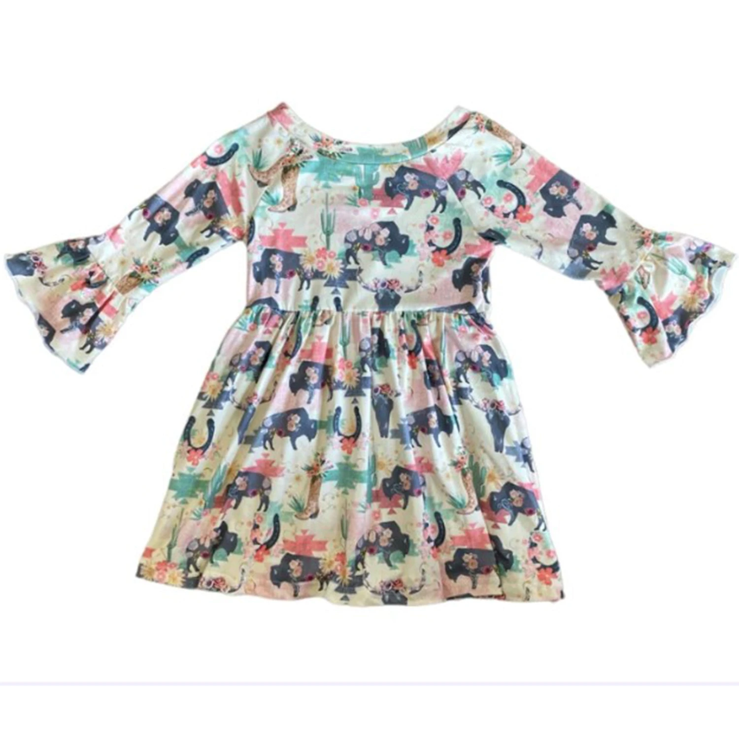 This little buffalo dress is a Western Edge favorite. Your little cowgirl will be cute and comfy in this soft dress.Â