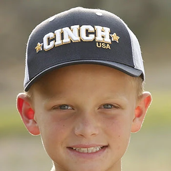 If he’s a give-me-the-basics kind of kid, this multicolored CINCH USA mesh back trucker cap is an ideal choice. Easy back snap closure and front panel 3D logo embroidery.