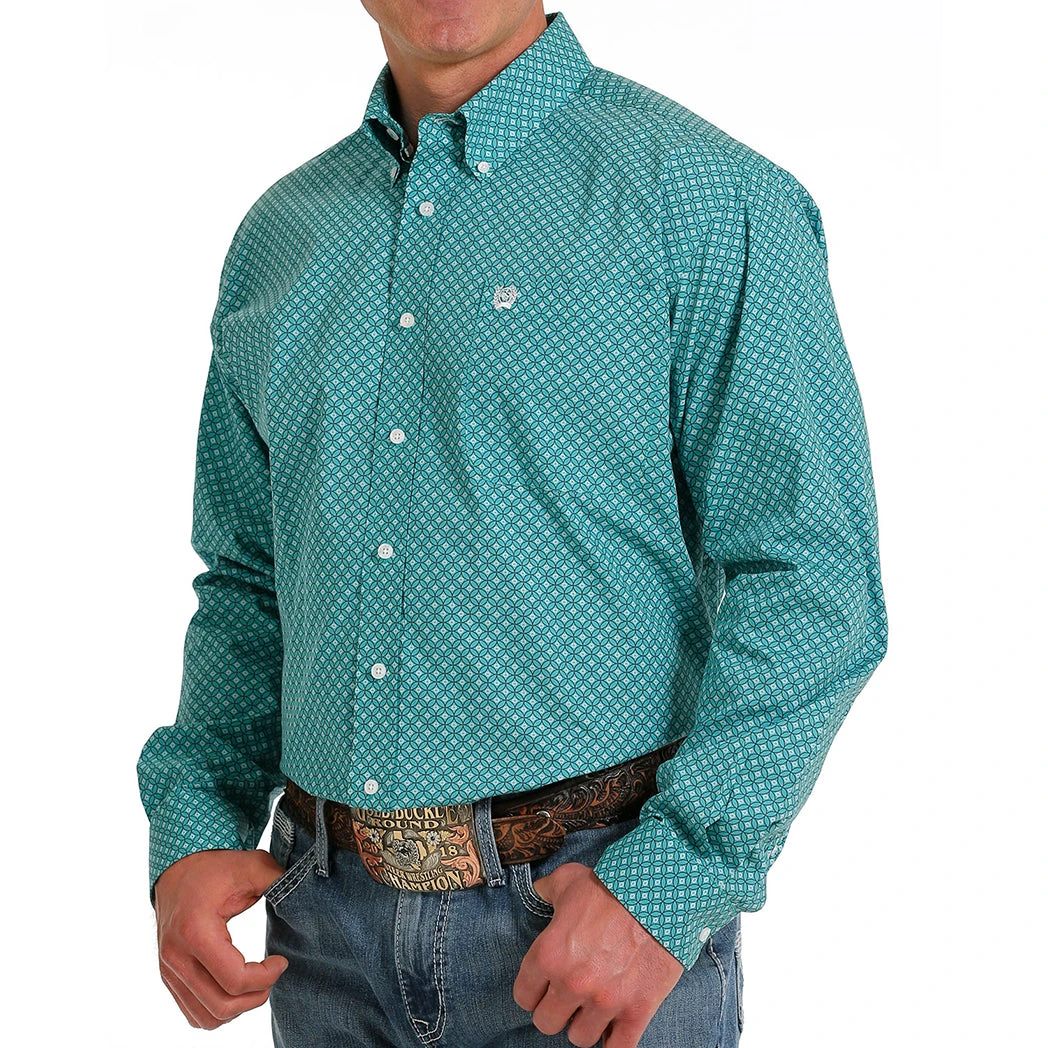 Look you best for any occasion in this turquoise print Cinch shirt. From the office to the arena this shirt will keep you looking sharp.Â