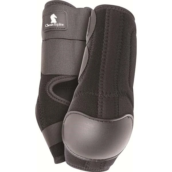 These Classic Equine skid boots feature asymmetrical skid cups to protect against burning heat and injury from sliding stops. These boots provide a clean, close, and flexible fit for protection and comfort.