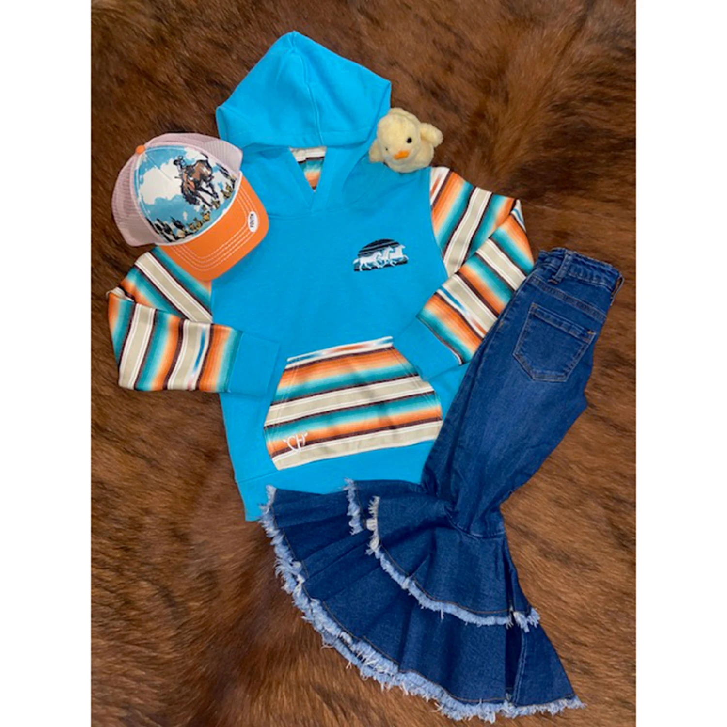 This hoodie has so many beautiful colors in shades of teal, rust and black. The serape design makes it perfect for school or play. Â