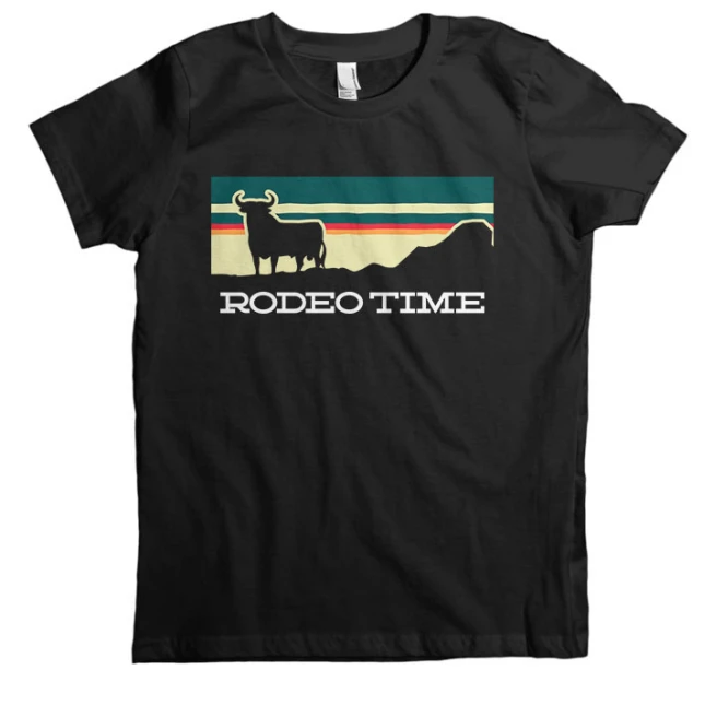 Dale Brisby, Sunset Rodeo Time Black Kids Tee.Â