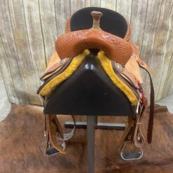 This chocolate 14 Inch Pozzi Roughout barrel saddle is one you do not want to miss out on. Double J brought there A game when making this saddle. I has a deep seat to help you sit better around the turns as well as a long narrow horn.