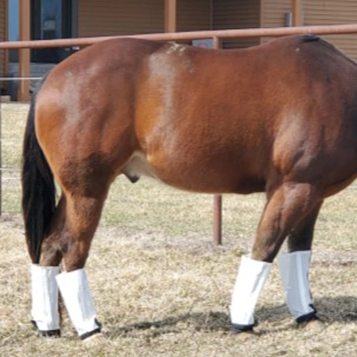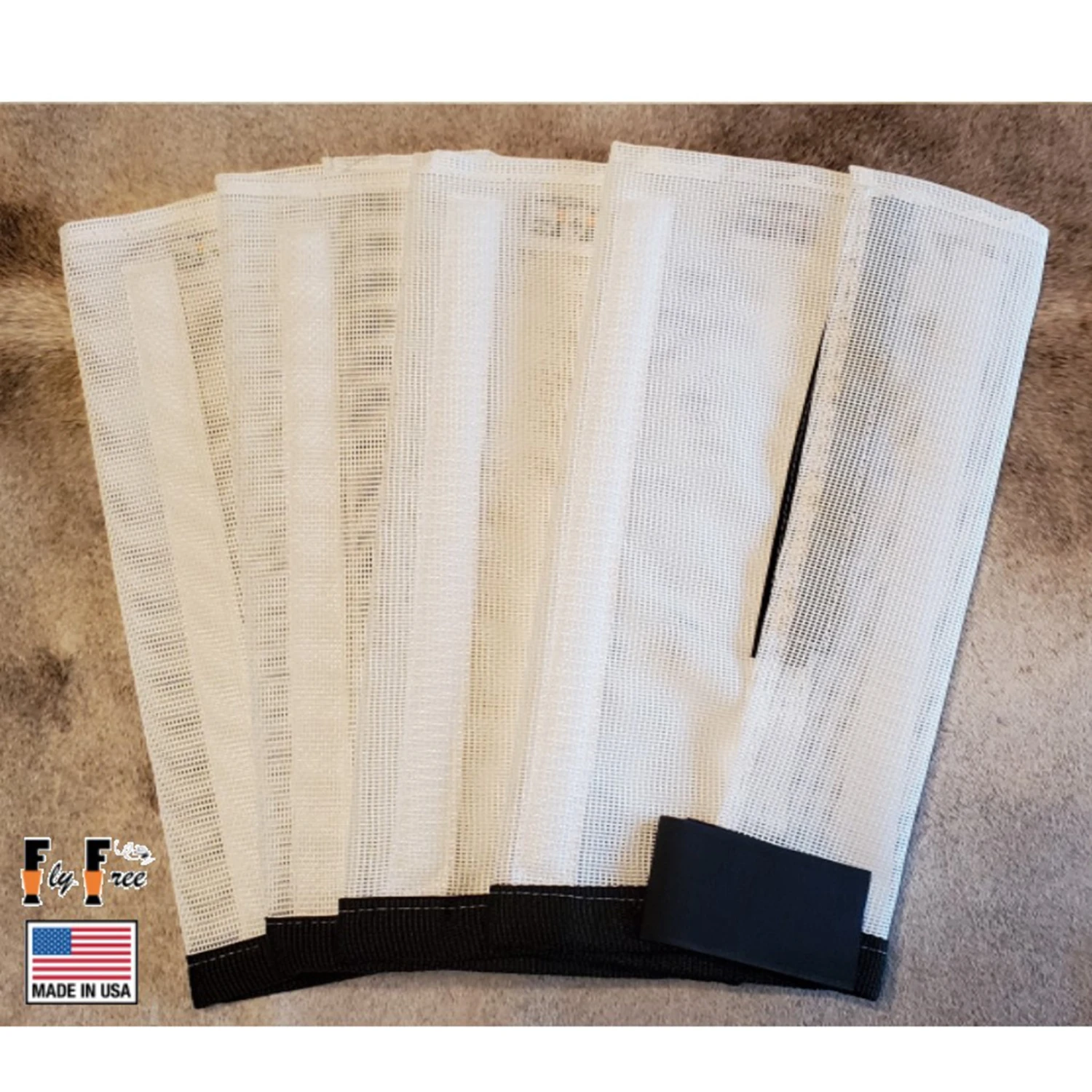 These made in America fly boots help prevent insect bites and botfly eggs on horses legs. They also help to reduce joint inflammation, hoof wear, and shoe wear from repetitive stomping. A new feature that the Fly Free boots differ from other brands is there “stay on” Velcro fasteners, which is comparable to one you would see on an over reach boot. With this new feature, most spend little to no time at all pasture hunting for fly boots. Another advantage to these boots is they also help with scratches by keeping morning dew off the horses legs.Â
