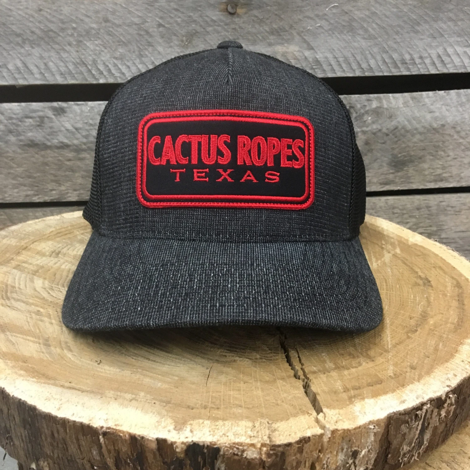 This Cactus Ropes cap from Hooey features a black and red logo patch atop a charcoal colored front and bill! The back mesh is all black.Â