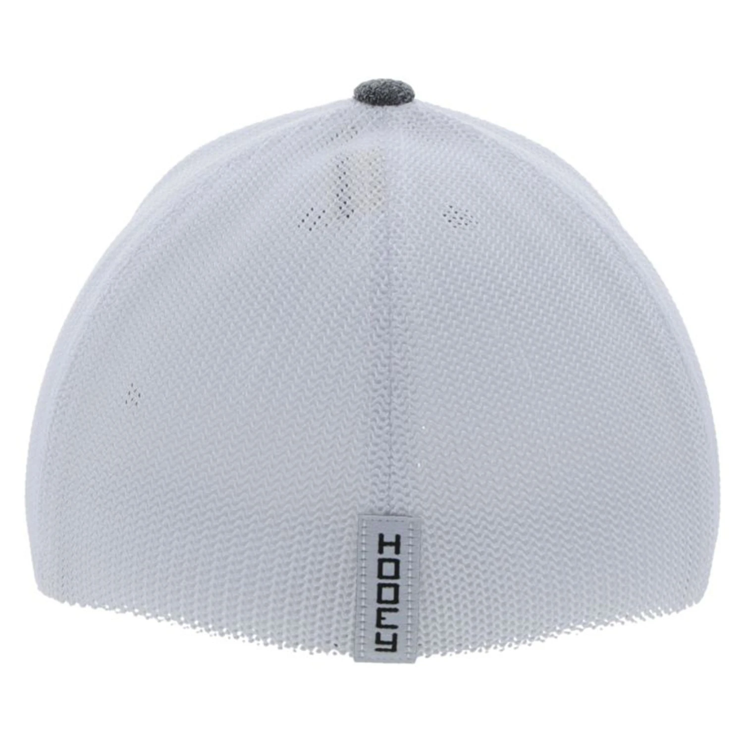 This Cactus Ropes cap is a 5-panel flex fit. The heather grey front features a turquoise, white and black rectangle patch with logo and a white mesh back with the Hooey logo.