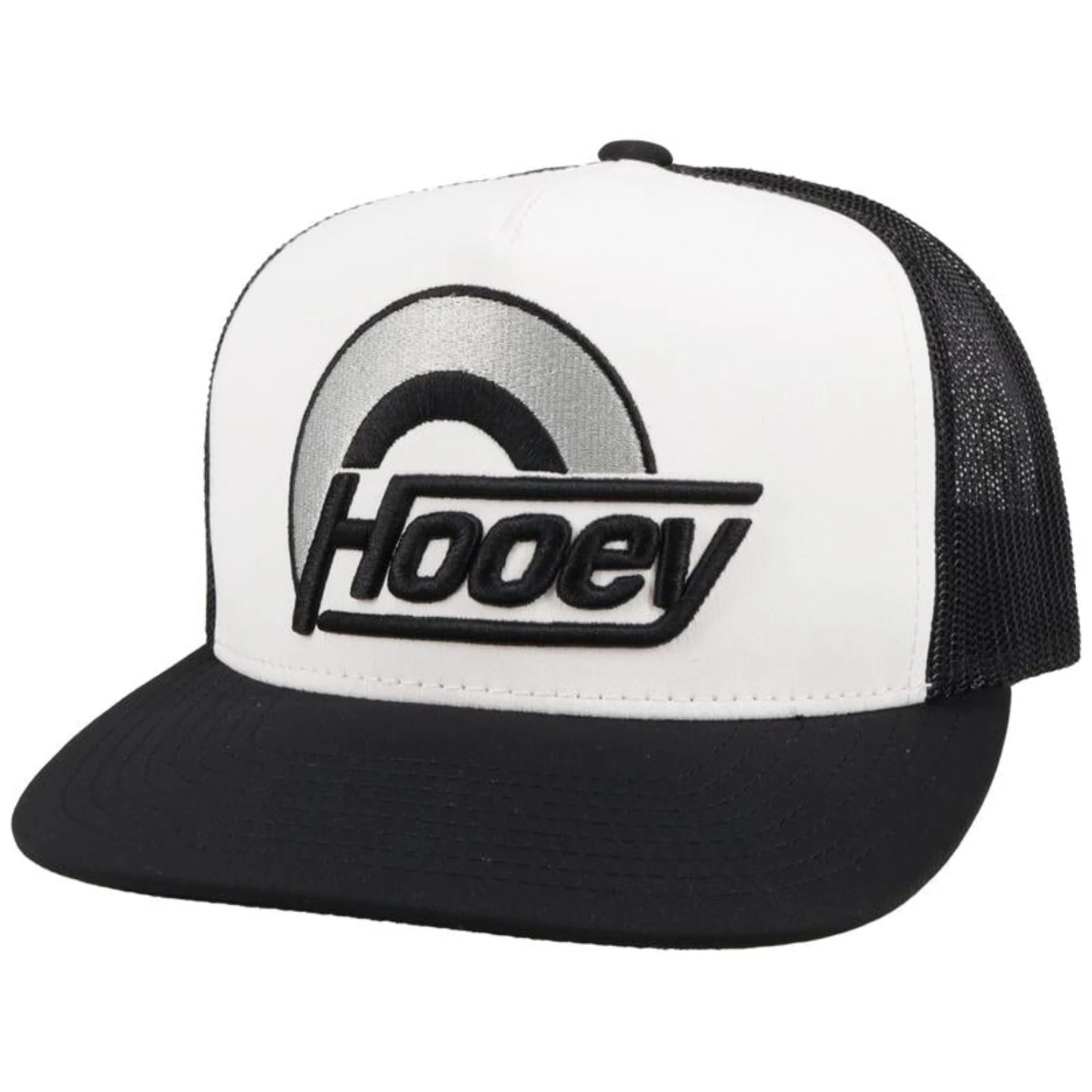 This black and white trucker cap is offered in a high profile 5-panel construction. White front has large black and silver Hooey logo. OSFA adjustable snapback for fit. Made of Odessa Fabric which will help prevent those ugly sweat rings and moisture! Contrasting backstrap.Â