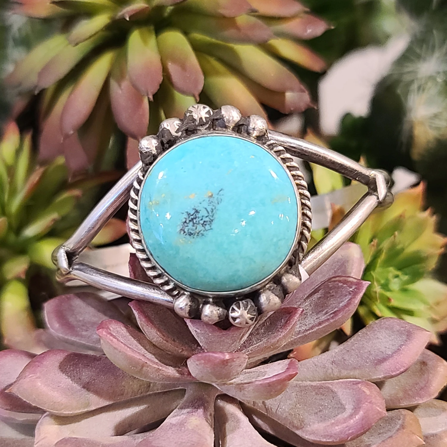 This is a very pretty Royston Turquoise cuff. It is medium in size and has some adjustability to it for those smaller wrists.Â