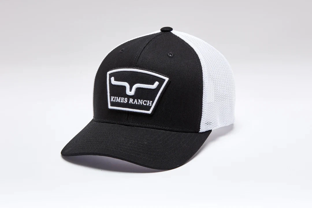 Kimes Ranch mid-profile 6-panel cap comes with a curved bill. Available in four color options. Solid front panels and mesh back panels for proper ventilation. Adjustable backstrap for proper fit. Kimes Ranch Horns logo patch on front.Â