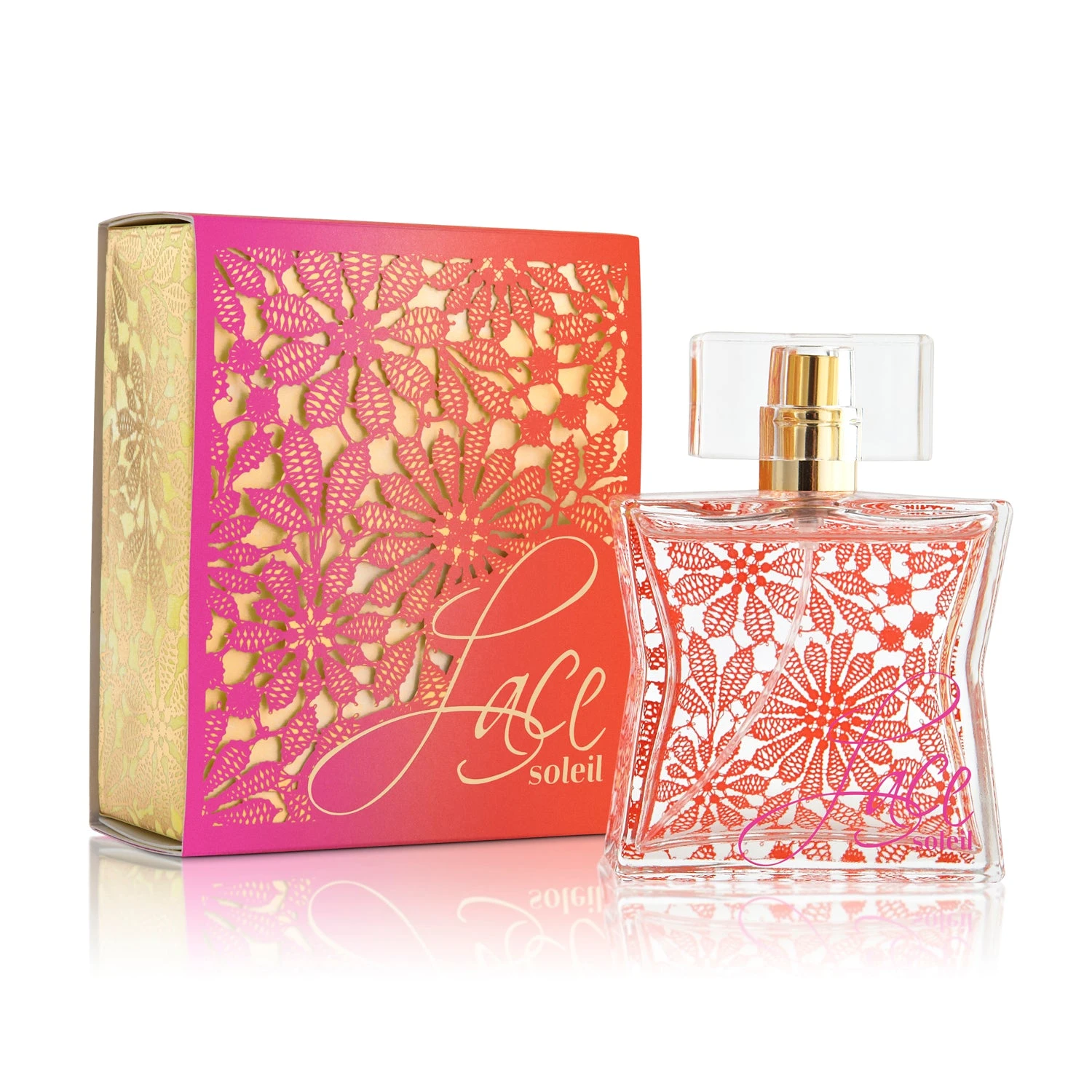 Lace Soleil is ”daytime flirty” perfect for brunch of a day of shopping. Fresh and playful Lace Soleil blends delectable passion fruit and juicy peach with peony blossom and warm amber for a sparkly and flirty scent.