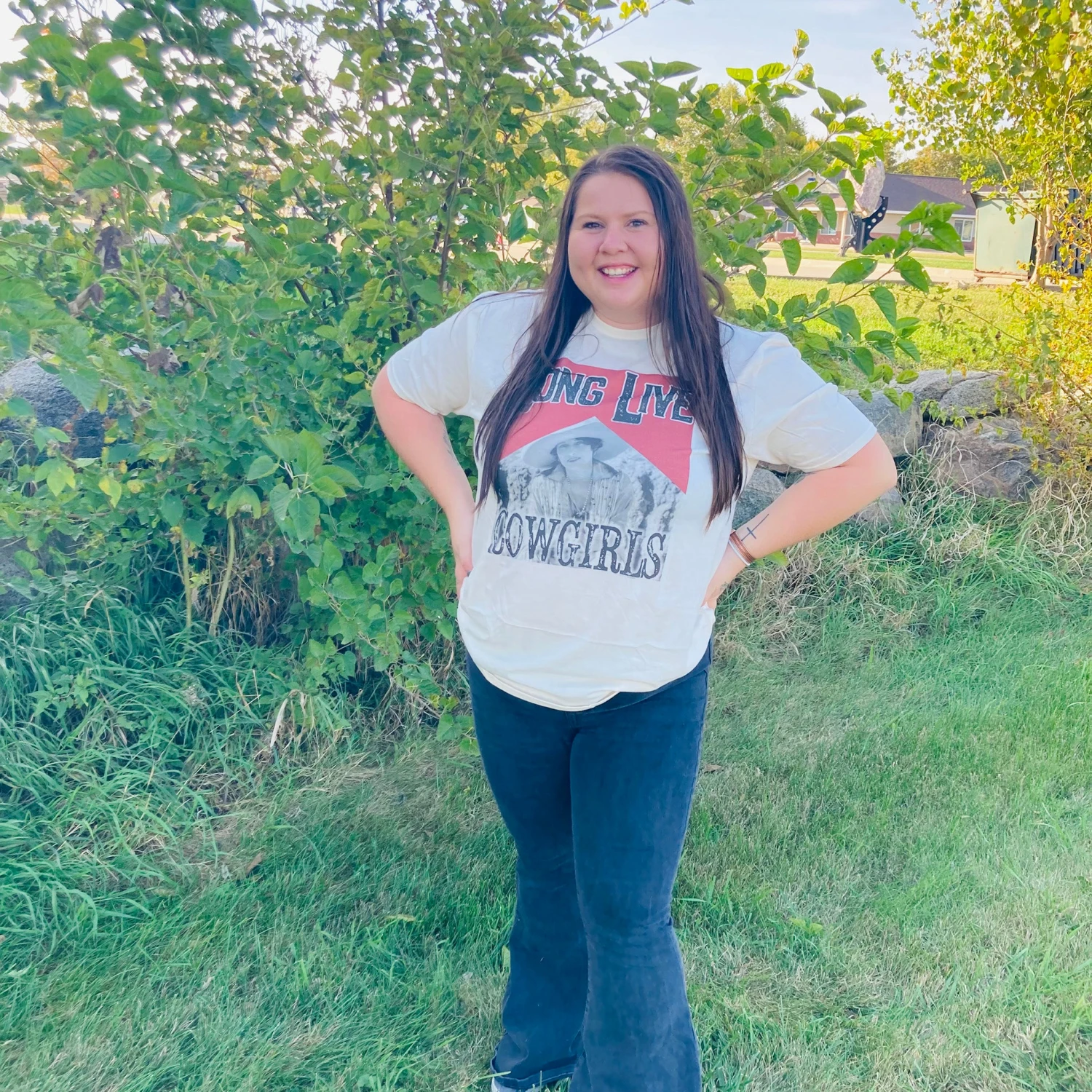 We simply love this LONG LIVE COWGIRLS Graphic Tee. Wear it alone or pair it with your favorite shacket