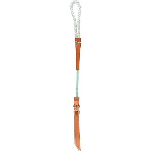 This aqua rope quirt had an adjustable braided rope wristband and leather popper.Â