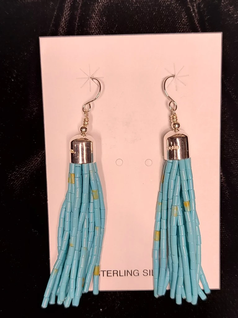 Medium length Turquoise Beaded Fringe Earrings at their finest. These are about 2 inches in length, the perfect finish to any outfit.