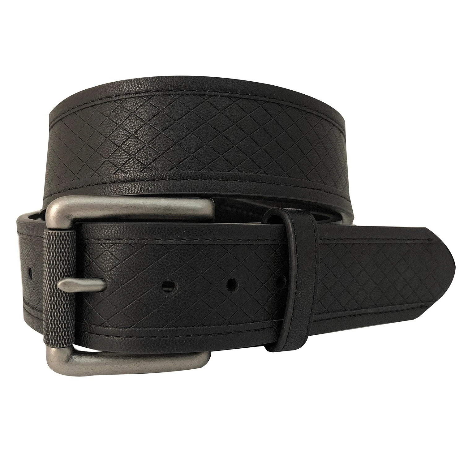 Guys don’t miss out on this belt from Gem-Dandy. Features a plan black leather with diamond pattern on it. Great for an every day belt or same it for those special occasions.
