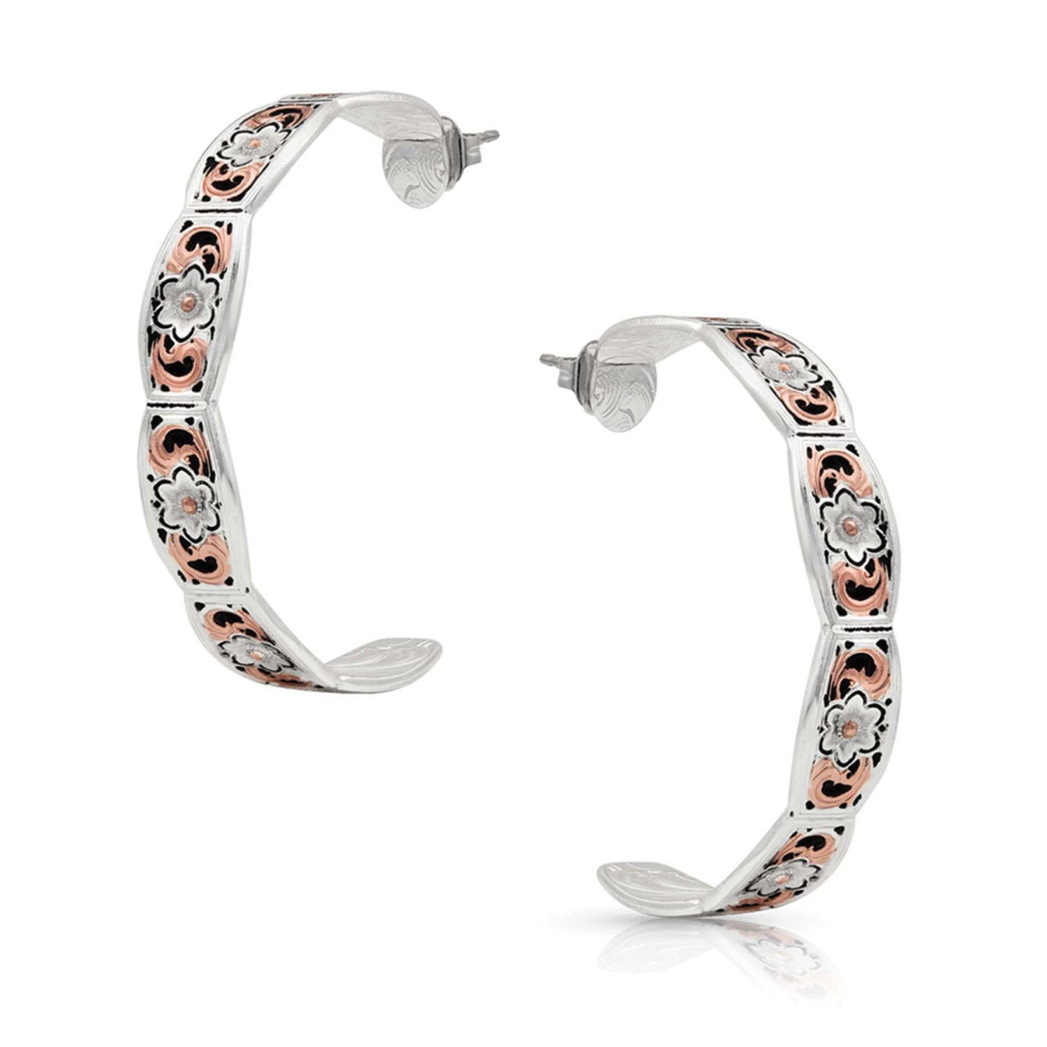 These beautiful hoop earrings from Montana Silversmiths features flowers and filigree throughout! The earrings have hypoallergenic back posts.