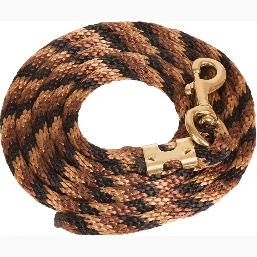 This fun multi color lead rope from Mustang is 9′ long and 5/8″ wide! It also has a brass plated bolt snap that’s 7/8″.Â