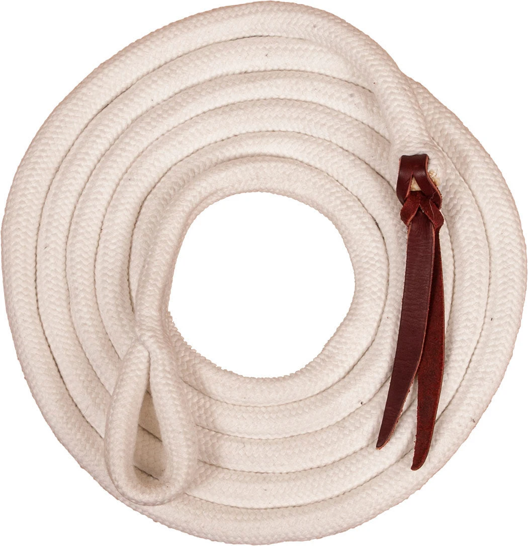 5/8″ x 10′ Pima Cotton lead rope with leather popper end. Pima Cotton is considered to be the superior blend of cotton and is extremely durable and soft to the touch.