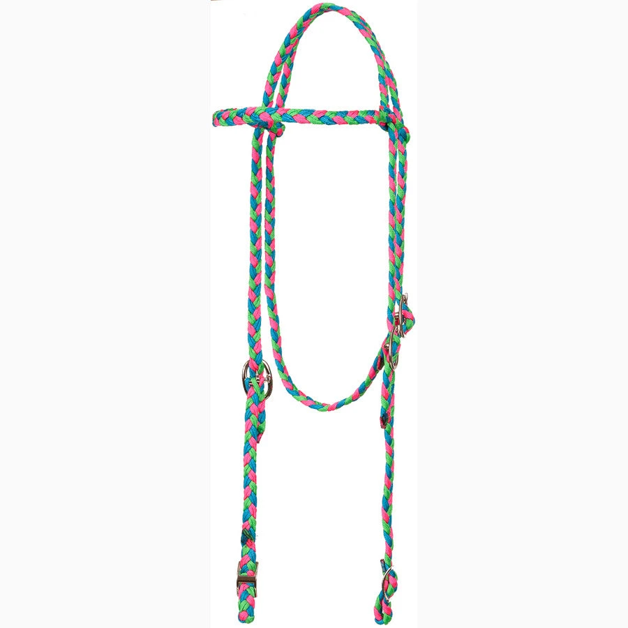 This Mustang browband is stunning! Its colors of pink, turquoise, and lime really make this browband pop! It also has nickel plated hardware!