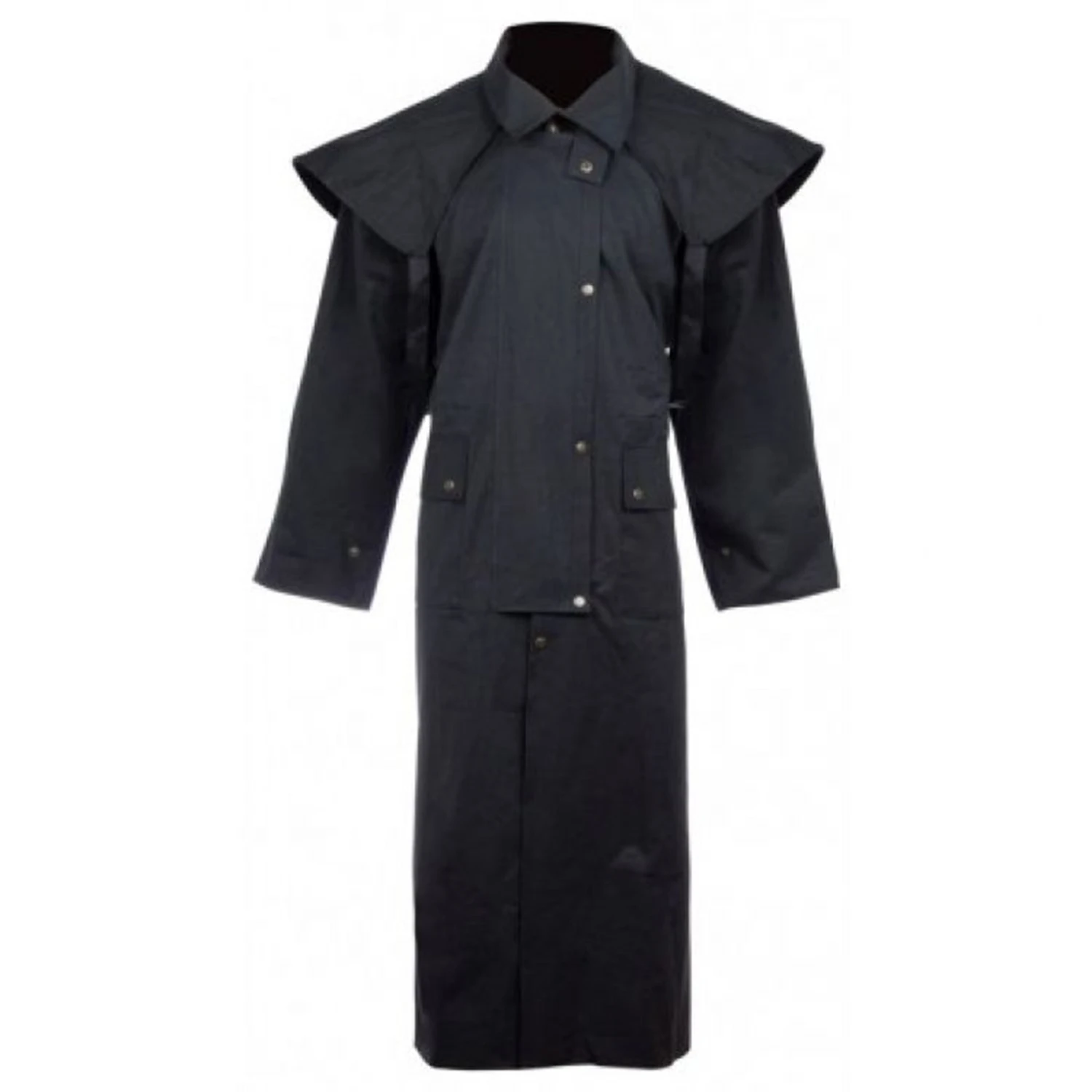 This oilskin duster will keep the elements away from you. The duster is made with 100% cotton and specially infused twice with our oil/wax formula to ensure this duster is waterproof and will help keep you protected from rain, wind, and snow with added cotton liner.Â