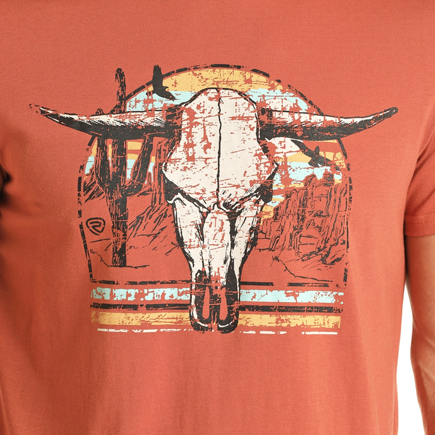 We love this rust color tee with the skull and cactus! This tee is unisex so ladies adjust your size accordingly.Â