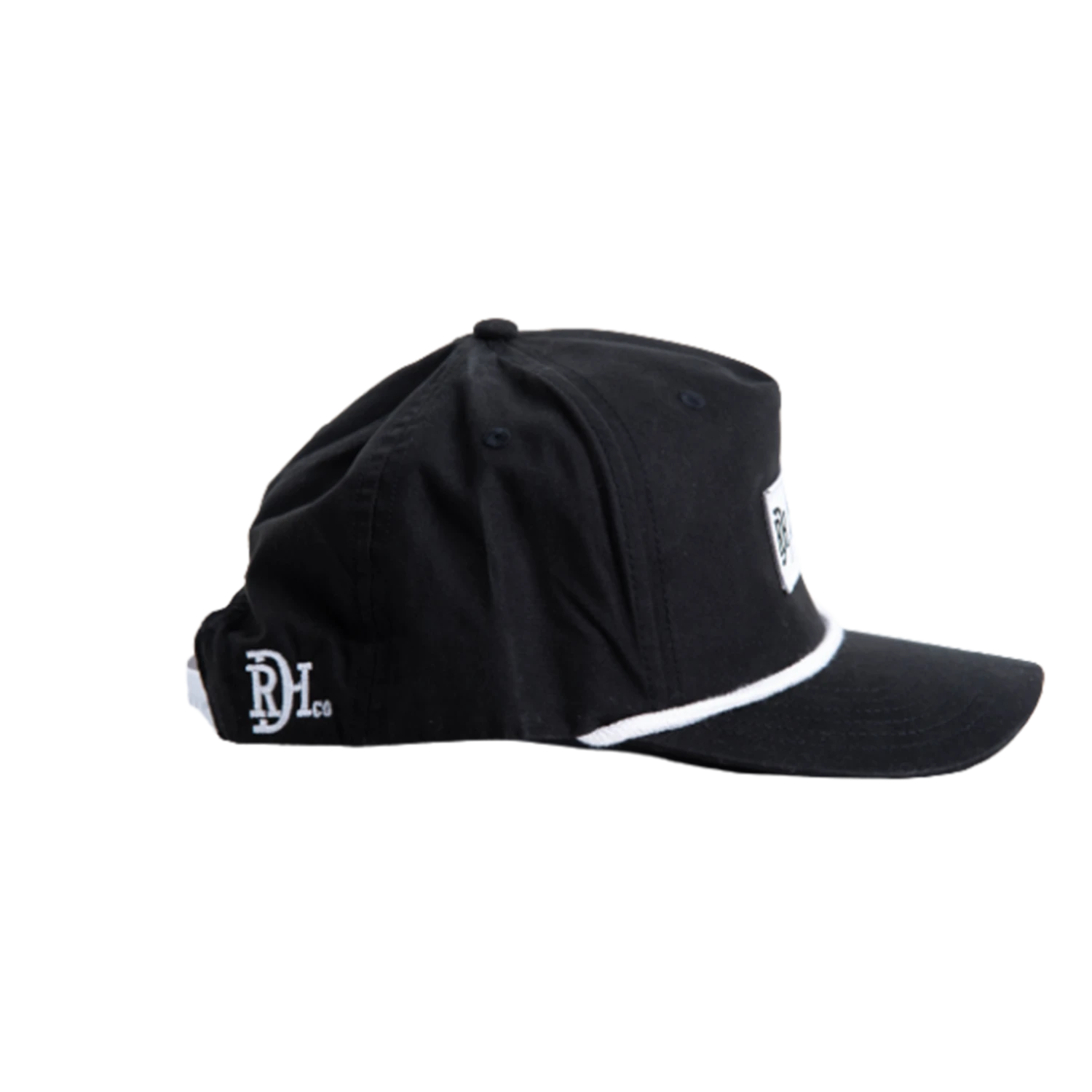 This Red Dirt cap features Black & white coloring along with the rope front & snapback & white woven RDH patch.