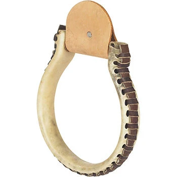 These Western Oxbow stirrups have a round bottom and a rawhide wrap. They feature a laced edge and a metal core.