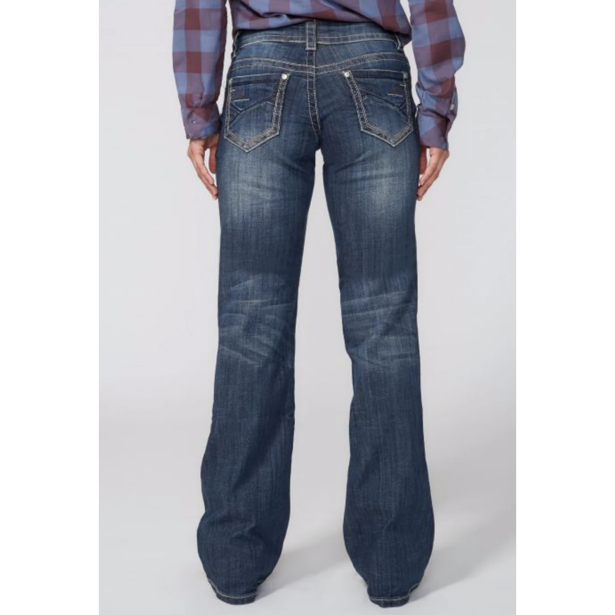 The 214 Trouser Fit Jean With Deco Back Pocket have a great fit, sitting just below the waist with a moderate fit through the thigh and opening to a flared leg. Gently hand sanded, style features decorative angular stitching on back pockets and traditional 5-pocket zip and single button closure.Â