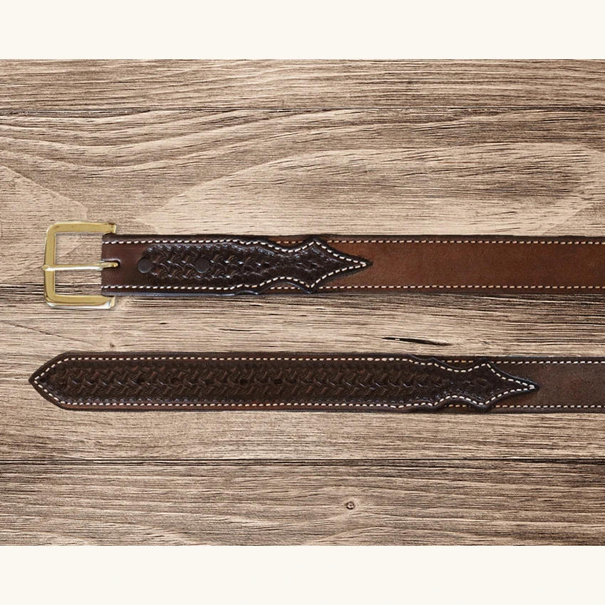 Kids Chocolate Roughout and Spider Tooling Combination Belt, from Texas Saddlery.