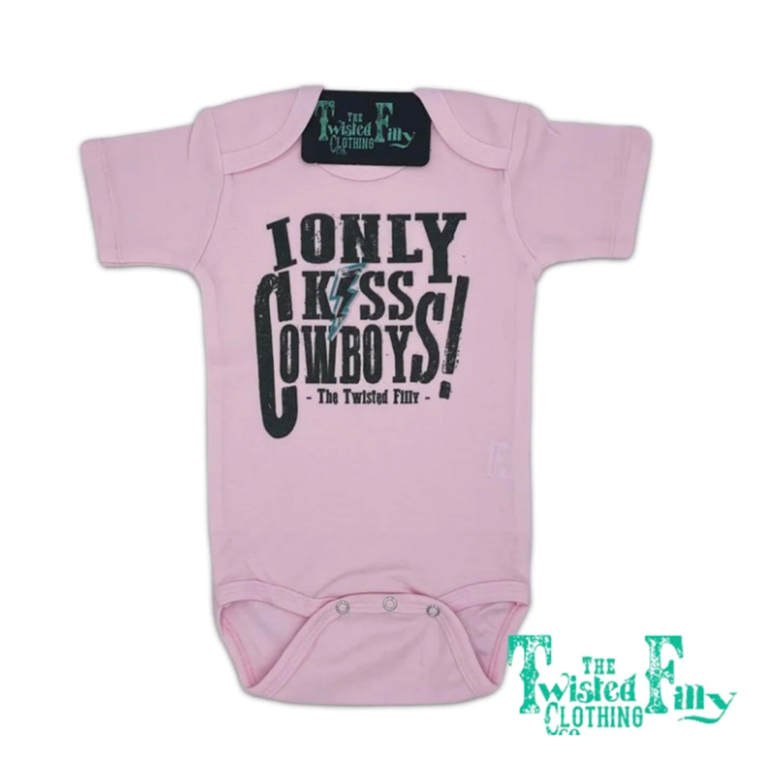 How cute is this pink “I Only Kiss Cowboys!” Onesie. Your little cow gal will be super cute in this alone or paired with your favorite shorts or jeans.Â