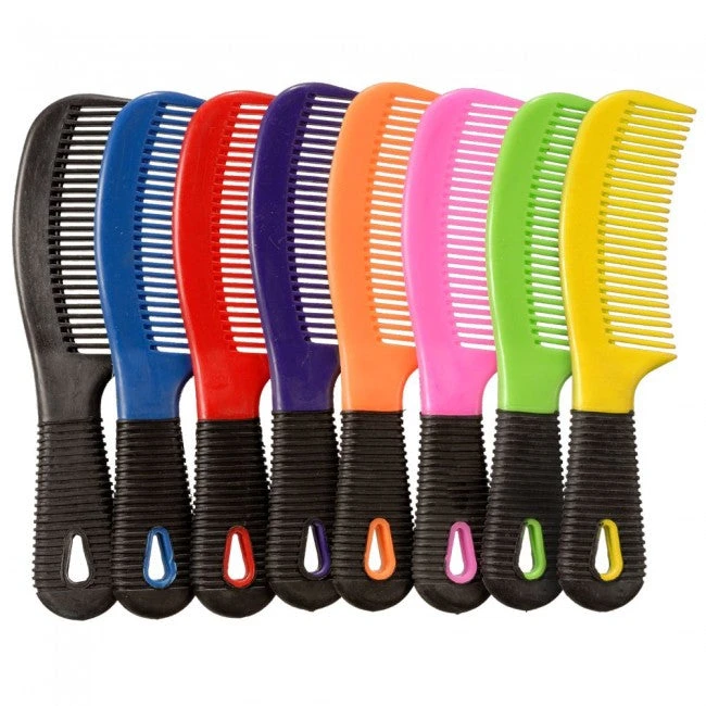 Designed to comb out mane and tail easily. Constructed of durable polymer and features an easy-grip handle. 8” long. Assorted colors, please specify when ordering.