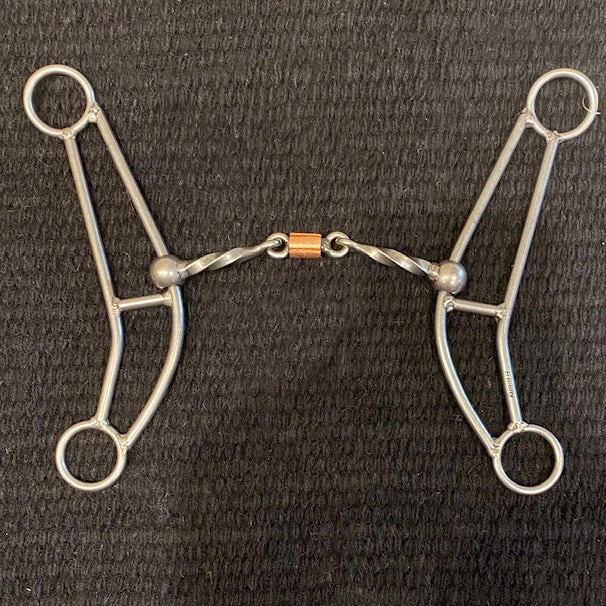 The Banana Gag, handmade by Troy Flaharty, is a great bit with amazing feel. It is a wonderful bit for training…it helps teach collection, keeps shoulders elevated, and lateral collection. This bit really helps a horse find their natural headset.Â
