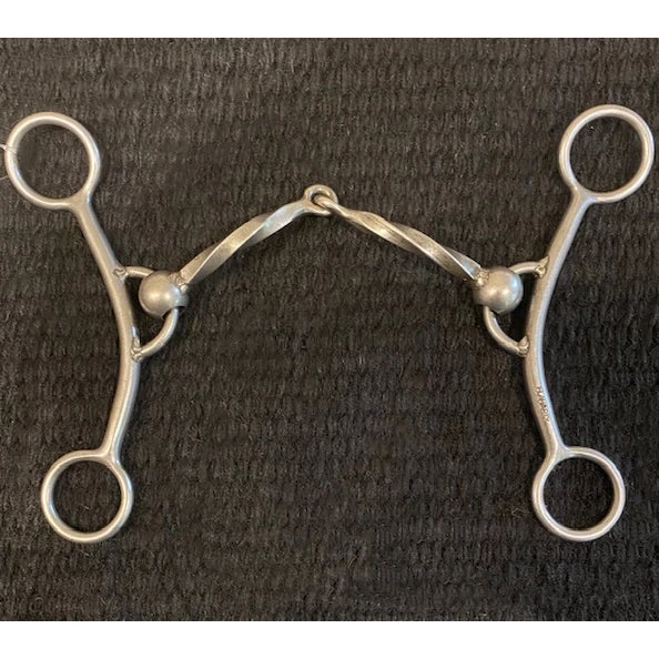 Handmade by Troy Flaharty, the “Lil’ Betty” Bit offers a great feel and weight. This bit is designed the same as the regular Betty, just with a shorter shank. This particular bit features a slow square twisted mouthpiece.Â