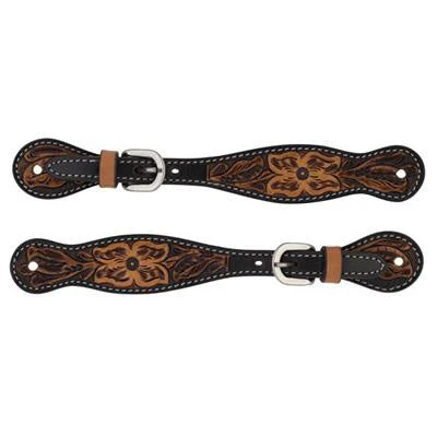 These spur straps from Weaver Leather have a lighted oiled floral design with a dark oiled background! They feature non-rust stainless steel hardware.Â