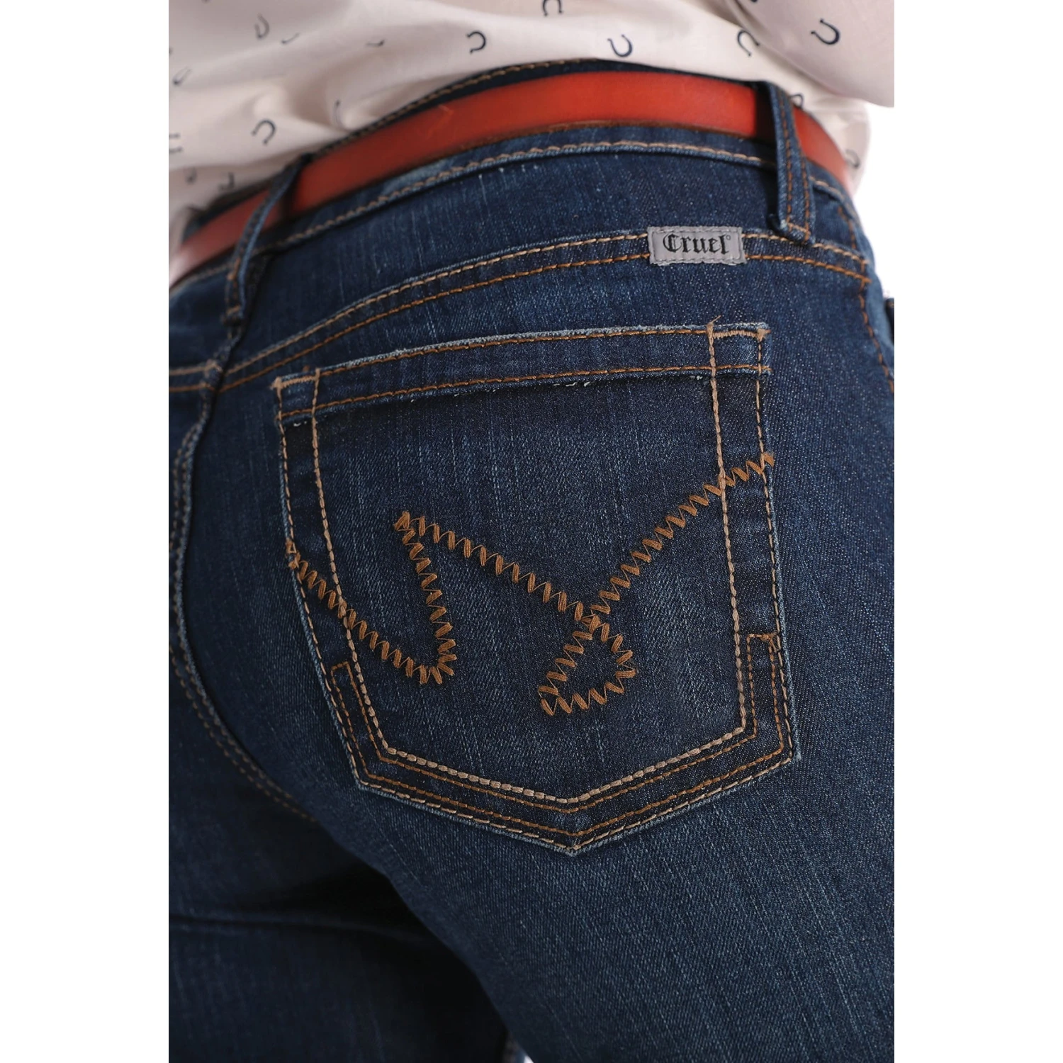 Ladies these jeans will have everyone talking and asking where you got them. They feature a dark stone wash with mid rise waist. The flare leg features a frayed hem giving them a unique look.Â