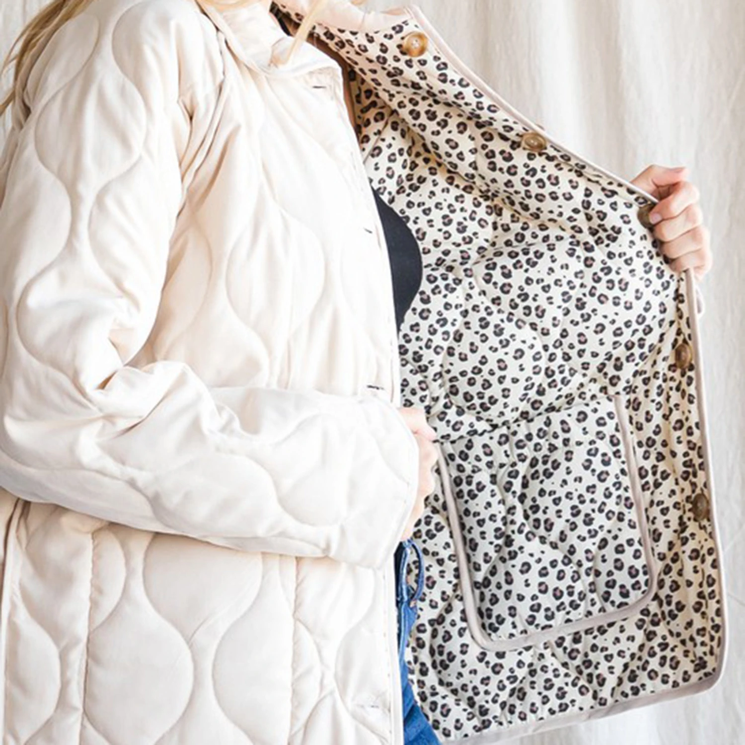 This fun reversible jacket is sure to match any outfit! Quilted stitching and button closure add to the unique look.Â