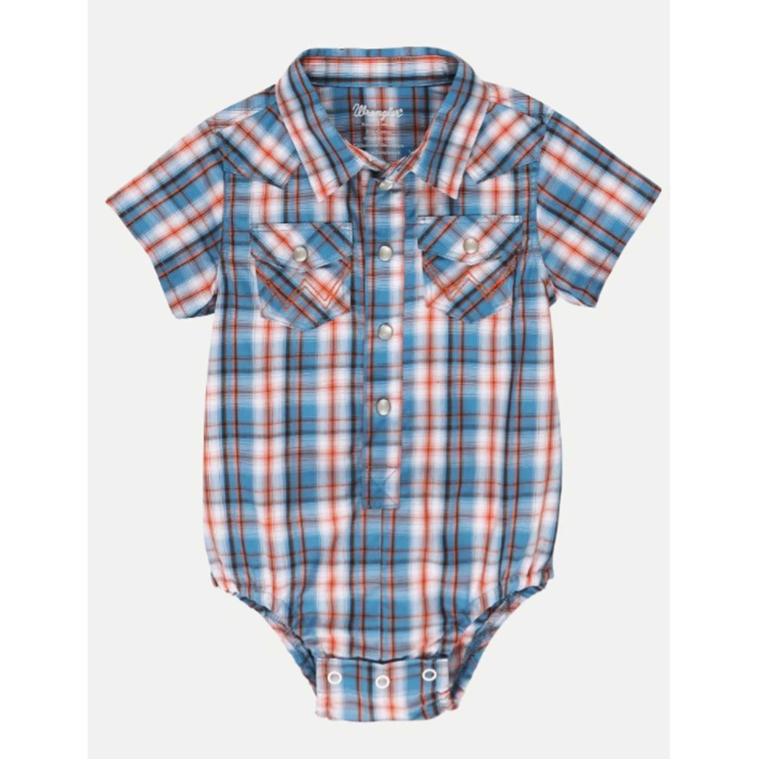 Your mini man will be ready for playtime in this plaid bodysuit. Bias Western yokes and snap pockets with three snap placket and seat closure also make it easy to wear.