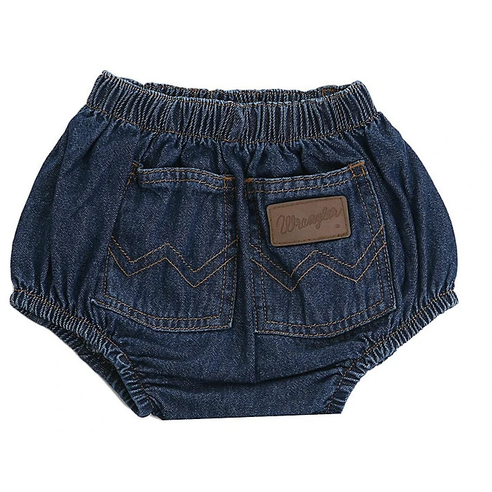 This lightweight denim diaper cover with full elastic legs and waist, from Wrangler, keeps little cowboys and cowgirls comfortable all day long. Full elastic waist and legs and authentic back pocket with “W” stitching.