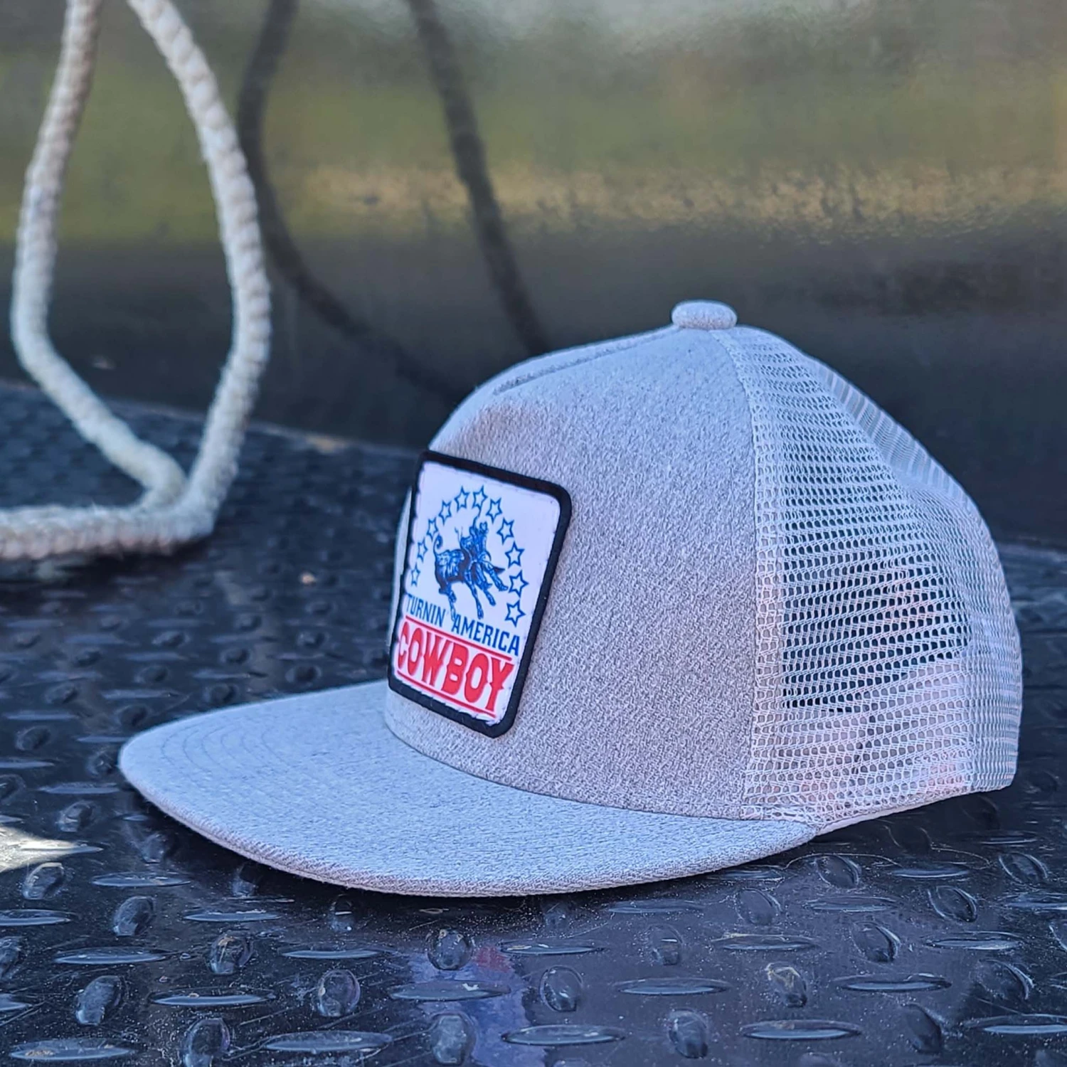 This heather grey cap says it all….. ” Turnin America Cowboy” what more do we need to say.Â